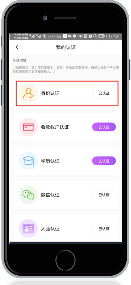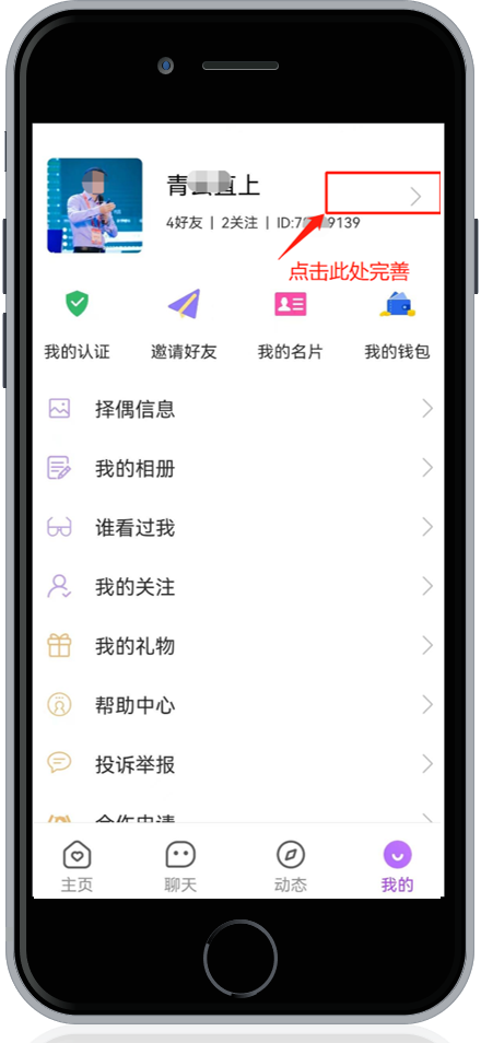 说明:如果遇见平台倡导真实交友婚恋,针对未完成个人资料,特别是头像者,是不会推荐给他人的,其他人也是无法看到您的信息的。所以需要大家完善一下信息→